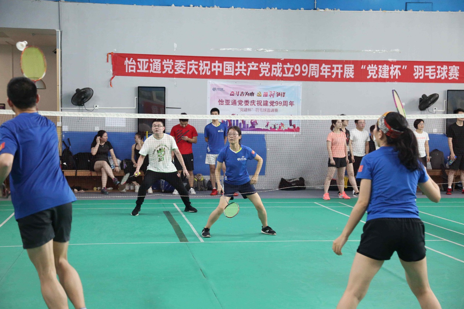为积极响应公司董事长兼CEO周国辉先生号召,全员学习“奋斗者为本”精神,发挥党员先锋作用,在岗位中开拓进取,创新突破,进一步增强党组织的凝聚力、战斗力。展现pa视讯人积极进取、奋勇争先、顽强拼搏的精神风貌。6月6日,值建党99周年之际,pa视讯党委组织庆祝建党99周年“党建杯”羽毛球邀请赛在万国羽毛球馆激情开赛。